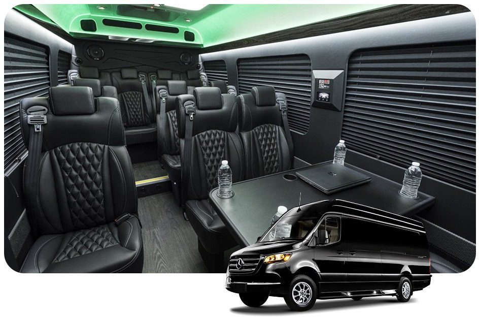 The Limo Sprinter offers a unique combination of limousine luxury and spaciousness. It seats 14 passengers with room for 16 bags. The interior boasts plush seating, mood lighting, and entertainment systems, creating an exclusive and festive atmosphere for any special occasion.