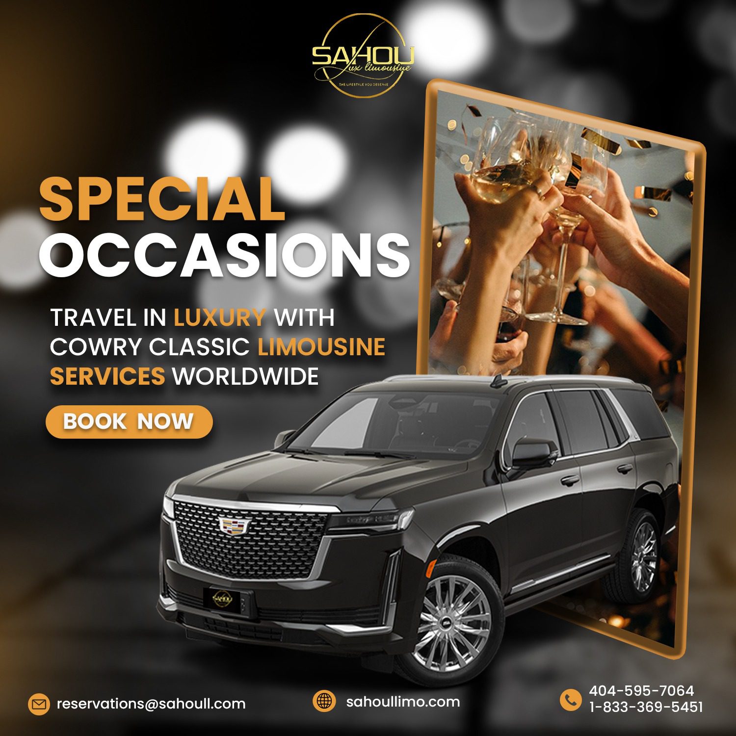 Ready to elevate your next special occasion with Sahou Lux Limo? Discover the ultimate in luxury and elegance with our special occasion limo service. Contact us today to book your exclusive event limo and make your celebration one for the ages. Call Us Now to create memories that will last a lifetime!