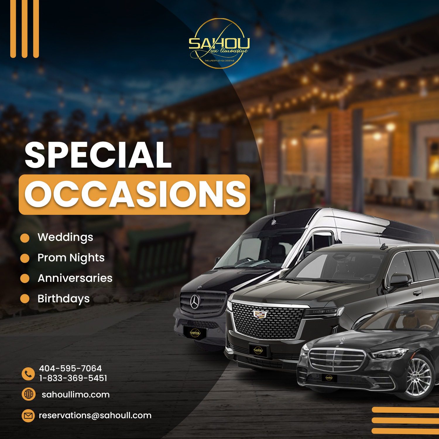 Ready to make your anniversary unforgettable? Elevate your celebration with a special occasion limo transportation service from Sahou Lux Limo. Whether you’re planning an intimate evening or a grand event, our customized limo service will add the perfect touch of luxury and elegance with our exclusive fleet. Don’t wait—book your exclusive event limo today and experience the ultimate in VIP treatment. Celebrate in style, and let us handle the rest.
